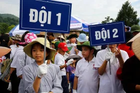 Các bạn trẻ được tập hợp thành 17 trung đội, phát động thi đua nhặt rác trong phạm vi trải dài 7km từ chùa Thượng xuống khu vực trung tâm Lễ hội. Bên cạnh tập thể Đoàn viên Khối đoàn Tỉnh Vĩnh phúc và tình nguyện viên YDA Việt Nam còn có sự tham gia của nhiều sinh viên Hà Nội, dù bận rộn với mùa thi vẫn mong muốn góp sức chung tay trong thiện hạnh vì môi trường.