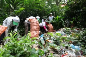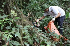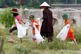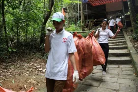 Các bạn trẻ nhặt rác tại Tây Thiên