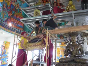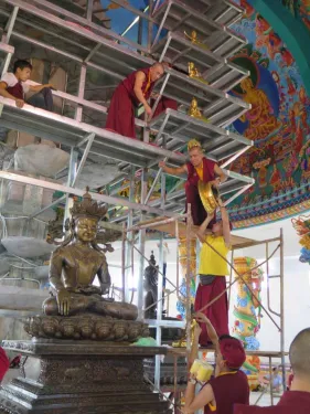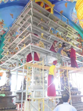 Công tác chuẩn bị trong lòng Đại Bảo Tháp Mandala Tây Thiên