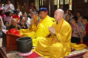 Đức Pháp Vương và Tăng đoàn đã được Thượng tọa Thích Đức Thiện, Phó Chủ tịch kiêm Tổng Thư ký Hội đồng Trị sự Giáo hội Phật giáo Việt Nam, trụ trì chùa, đón tiếp trang trọng và thân tình.