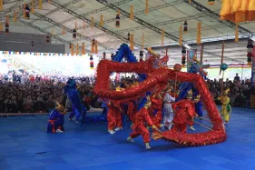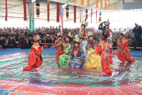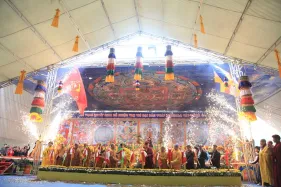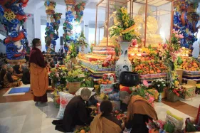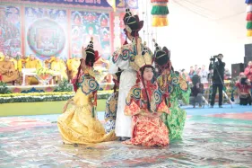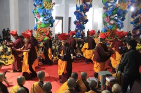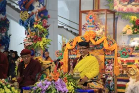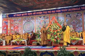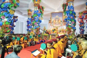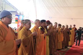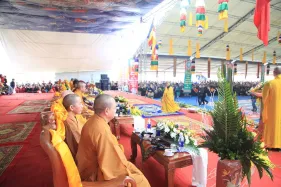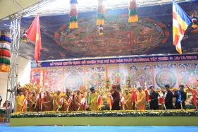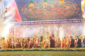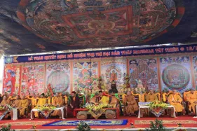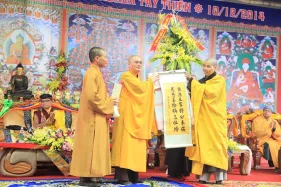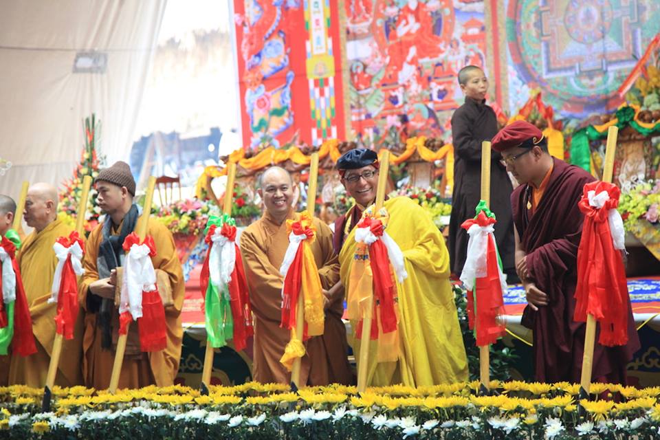 Hình ảnh đức Pháp Vương Gyalwang Drukpa và Tăng đoàn tham dự và gia trì cho buổi lễ động thổ công trình hồ Hương Thủy và bổ nhiệm trụ trì Đại Bảo Tháp Mandala Tây Thiên ngày 10/12/2014