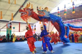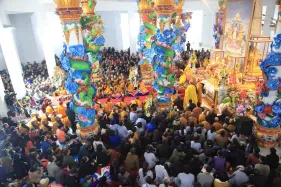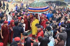 Hình ảnh đức Pháp Vương Gyalwang Drukpa và Tăng đoàn tham dự và gia trì cho buổi lễ động thổ công trình hồ Hương Thủy và bổ nhiệm trụ trì Đại Bảo Tháp Mandala Tây Thiên ngày 10/12/2014. Vào buổi chiều, Đức Pháp Vương và Nhiếp Chính Vương Drukpa Yongdzin Rinpoche đã chủ trì khóa lễ thí thân pháp Sengey Tsewa trong lòng Đại Bảo tháp. Sau đó Đức Pháp Vương đã trồng những cây bồ đề đầu tiên tại Đại Bảo tháp.