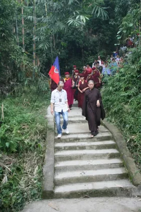 Sau khi xuống núi, Đức Pháp Vương và Tăng đoàn đã cử hành Đại pháp hội quán đỉnh A Di Đà và Phật Dược Sư, cầu nguyện cho Đại Bảo tháp Tây Thiên, một ngôi Bảo tháp đang được xây dựng ở chân núi