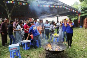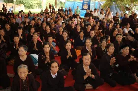 Hình ảnh Đại Pháp Hội Quán đỉnh cộng đồng, Cầu nguyện hòa bình thế giới, quốc thái dân an Mạn Đà La Bản Tôn Phật Liên Hoa Sinh. Pháp hội cúng dàng Hỏa tịnh tiêu trừ chướng ngại tăng phúc trường thọ tại Chùa Hoàng Long, xã An Đạo, huyện Phù Ninh, tỉnh Phú Thọ.