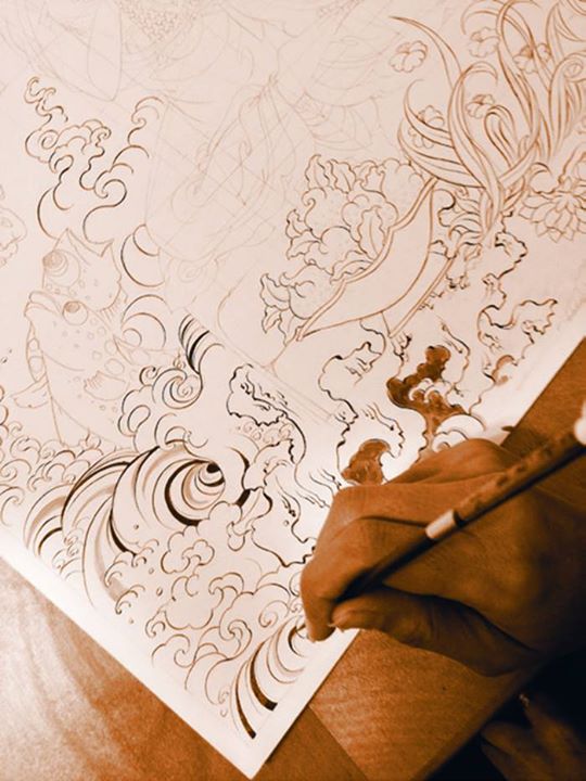 Họa sĩ vẽ tranh Thangka thường khởi đầu tranh bằng việc vẽ chủng tử thiêng của vị Bản tôn. Trong quá trình sáng tạo, các họa sỹ thiền quán về vị Bản tôn để có được những mối liên hệ ý nghĩa và hình ảnh sâu sắc với đối tượng vẽ. Tiếp đến họa sĩ vẽ bầu trời, tượng trưng cho việc các sắc tướng xuất hiện từ bầu trời tính không...Họa tiết cuối cùng là điểm nhãn (vẽ đồng tử) giúp tạo thần sắc sinh động cho tác phẩm.