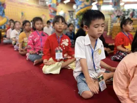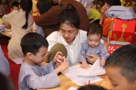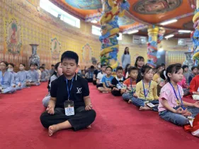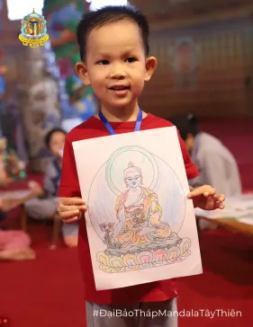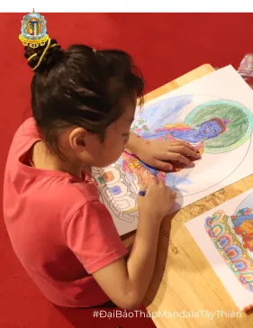 Tại khóa tu Dược Sư lần thứ 16 (ngày 22/10/2023) vừa qua rất đông các em nhỏ háo hức theo cha mẹ đến với Đại Bảo tháp Mandala Tây Thiên để được thỏa sức sáng tạo trong không gian vẽ, tô tranh Phật đã cho thấy sức hút mạnh mẽ của sân chơi giáo dục nghệ thuật này.