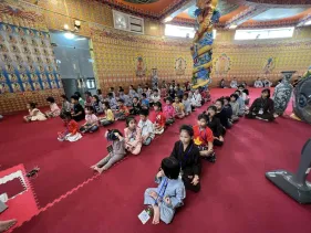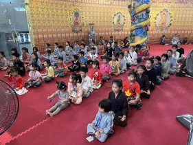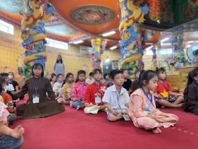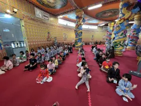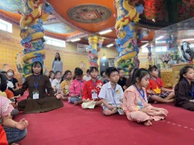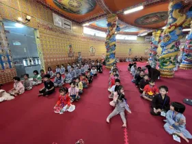 Các em đã có trọn vẹn trong một ngày tham gia các hoạt động văn thể mỹ bổ ích,vui tươi lứa tuổi thiếu nhi: Giải thích ý nghĩa hình ảnh Đức Phật Dược sư; Vẽ, tô màu tranh Phật Dược Sư giúp phát triển khả năng tập trung, phẩm chất kiên nhẫn và trưởng dưỡng kết nối với Phật Dược Sư; Thiền yoga trên nền nhạc Chân Ngôn Phật Dược Sư giúp phát triển cân bằng cả về thể chất lẫn tinh thần. Đặc biệt, các em được hướng dẫn và tự tay làm thiệp chúc mừng mẹ/bà nhân ngày phụ nữ Việt Nam 20/10, giúp các em thực hành tri ân sâu sắc.