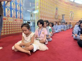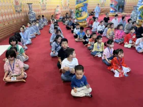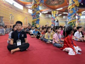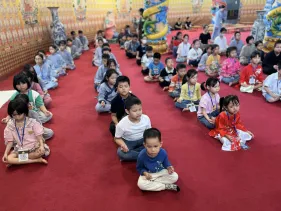 Ni sư trụ trì Bảo Tháp giảng: Chúng ta hướng đến Phật để phát triển tư duy tài năng và vun bồi tình yêu thương cho trẻ. Quá trình tham gia vào những khóa chuyên tu Phật Dược Sư, sinh hoạt nghệ thuật Phật giáo chính là cách hướng trẻ dành thời gian tâm huyết học, phát triển được phẩm chất trí tuệ Phật cũng như được cảm thụ và biết sẻ chia tình yêu thương như chính hạnh nguyện phổ độ nhân sinh của Đức Phật Dược Sư. Đó là tình yêu thương lớn nhất trong cuộc đời mỗi người, là chân hạnh phúc cần nhất trong hành trang cuộc đời con trẻ.