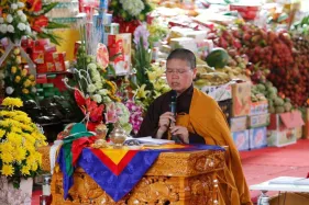 Khoá lễ cầu siêu tại Đại Bảo Tháp đã diễn ra miên mật từ sáng đến tối muộn qua các nghi lễ khác nhau (tụng kinh Mục Liên sám Phát, khai thị của quý Thầy về ý nghĩa cầu siêu, khoá lễ triệu thỉnh Phật A Di Đà, cúng dàng đèn hoa đăng, phóng sinh, cầu siêu quán đỉnh Changwa) với trọn vẹn sự tập trung và tâm thành của chư tăng, ni và đại chúng phật tử tham dự.