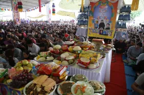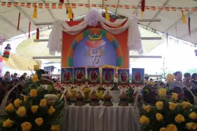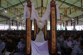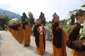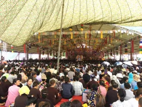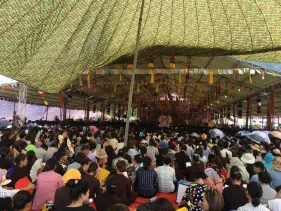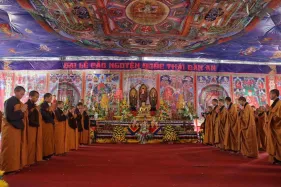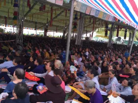 Ngày 03/09 - Trong không khí mùa Vu Lan báo hiếu cha mẹ và báo ân những bậc có công với đất nước, dân tộc, chư Tăng Ni Đại Bảo Tháp Mandala Tây Thiên long trọng tổ chức Đại đàn cầu siêu phả độ gia tiên, cửu huyền thất tổ. Không quản ngại cái nắng oi bức ngày cuối hạ, gần 7.500 Phật tử từ khắp nơi đã vân tập về Đại Bảo Tháp với mong nguyện dành trọn một ngày tu tập hồi hướng công đức cho cha mẹ nhiều đời, bà con nhiều kiếp được vãng sinh Tịnh độ.