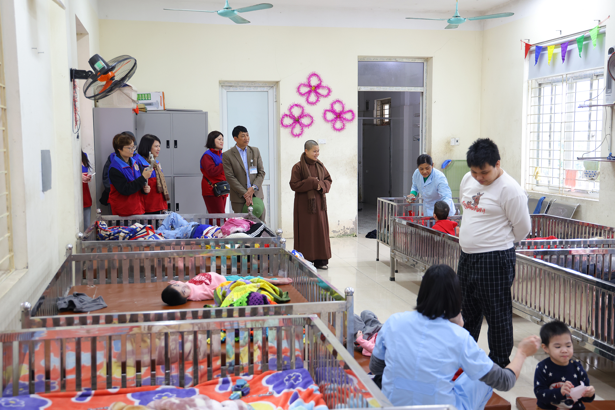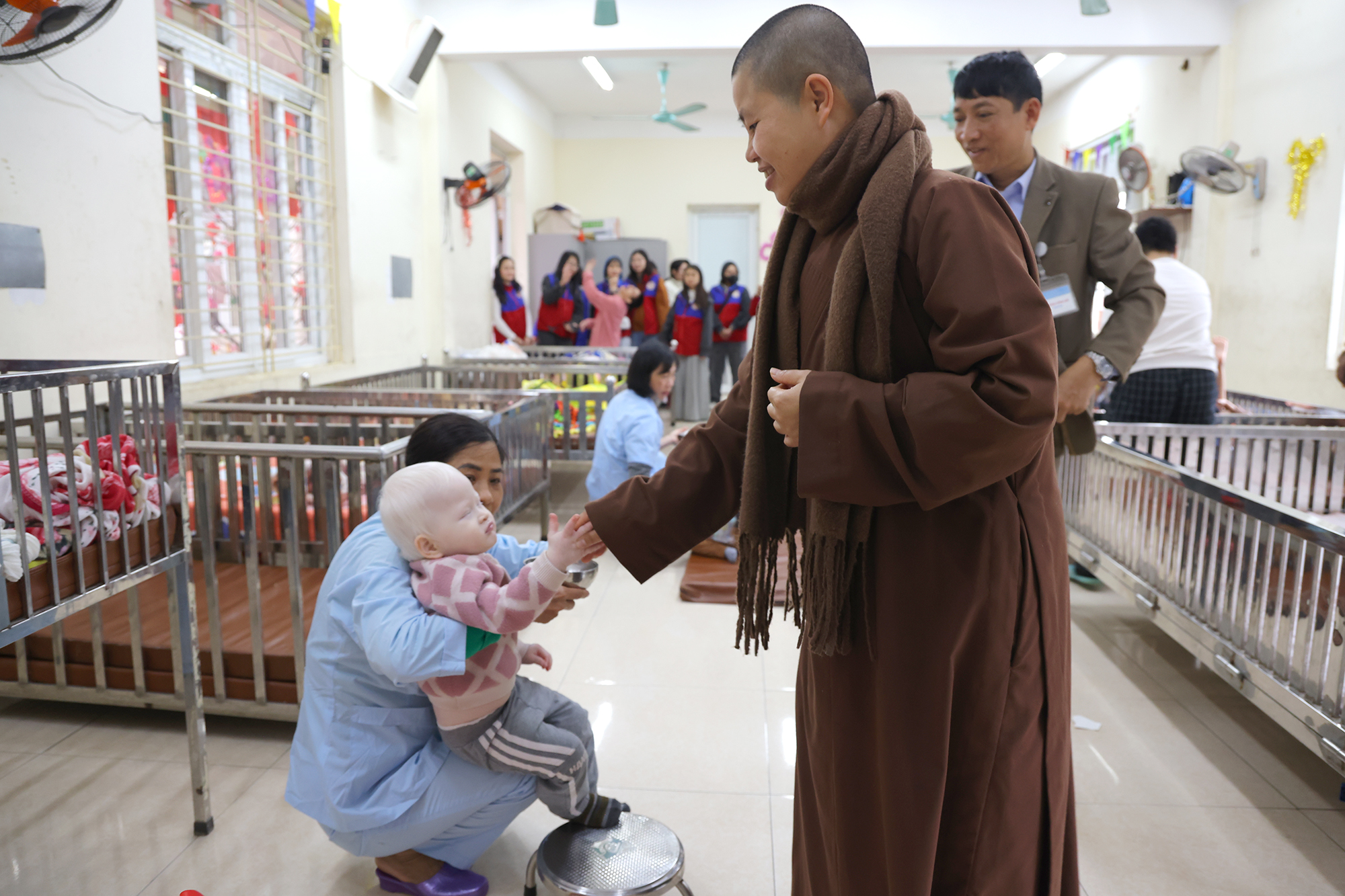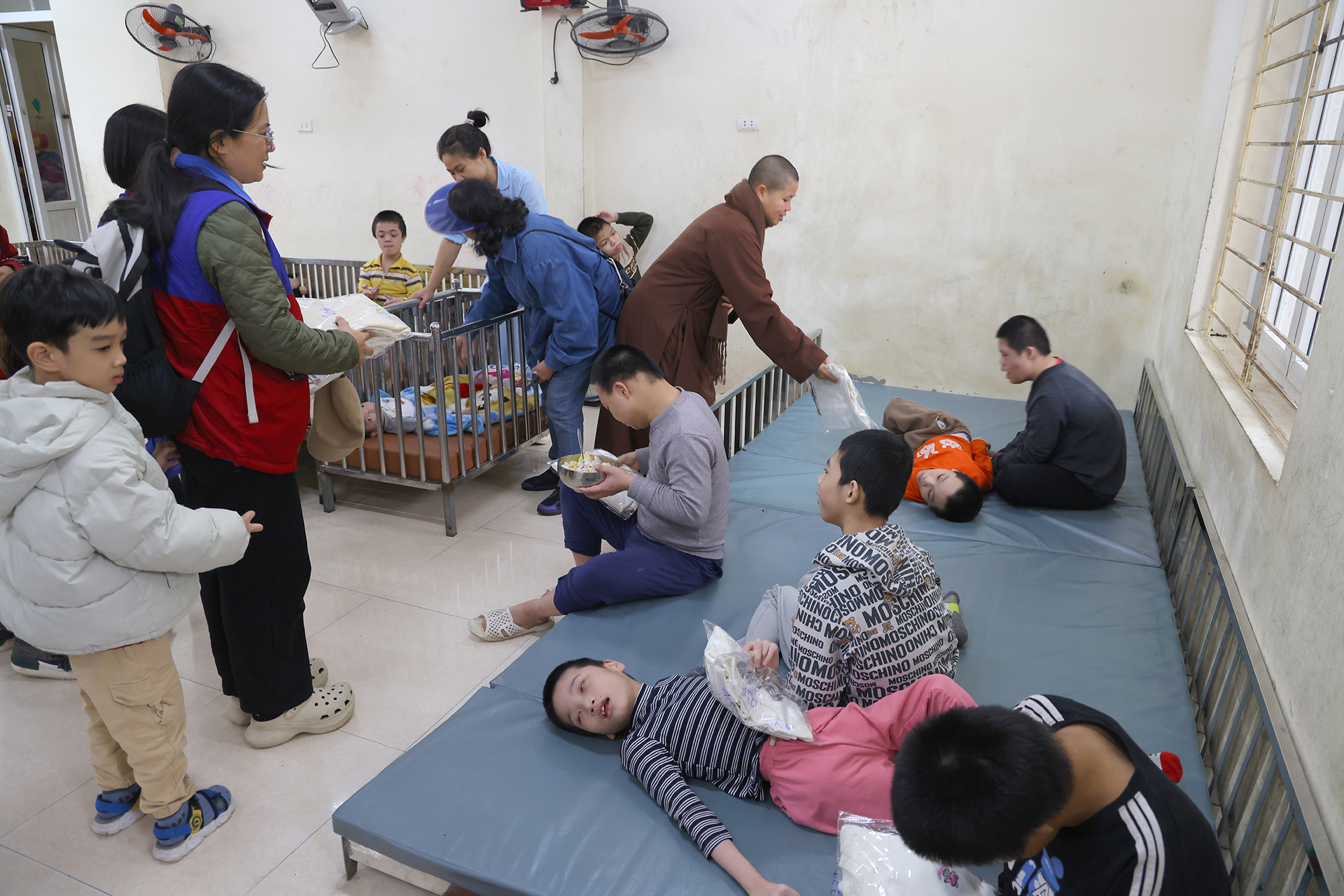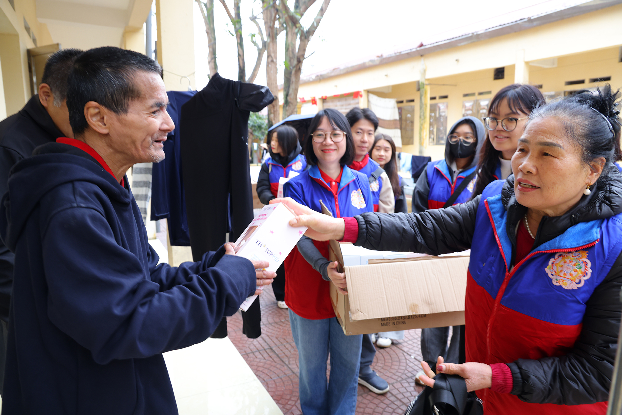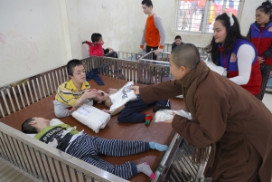 Trung tâm nuôi dưỡng người già và trẻ em khuyết tật Thụy An (Sơn Tây) – nơi đang chăm sóc hơn 320 mảnh đời thiếu may mắn. Tại đây Đoàn đã trao tặng nhiều nhu yếu phẩm thiết thực như bỉm, áo len người lớn và trẻ em, bột giặt, xà phòng, bình nước nóng…