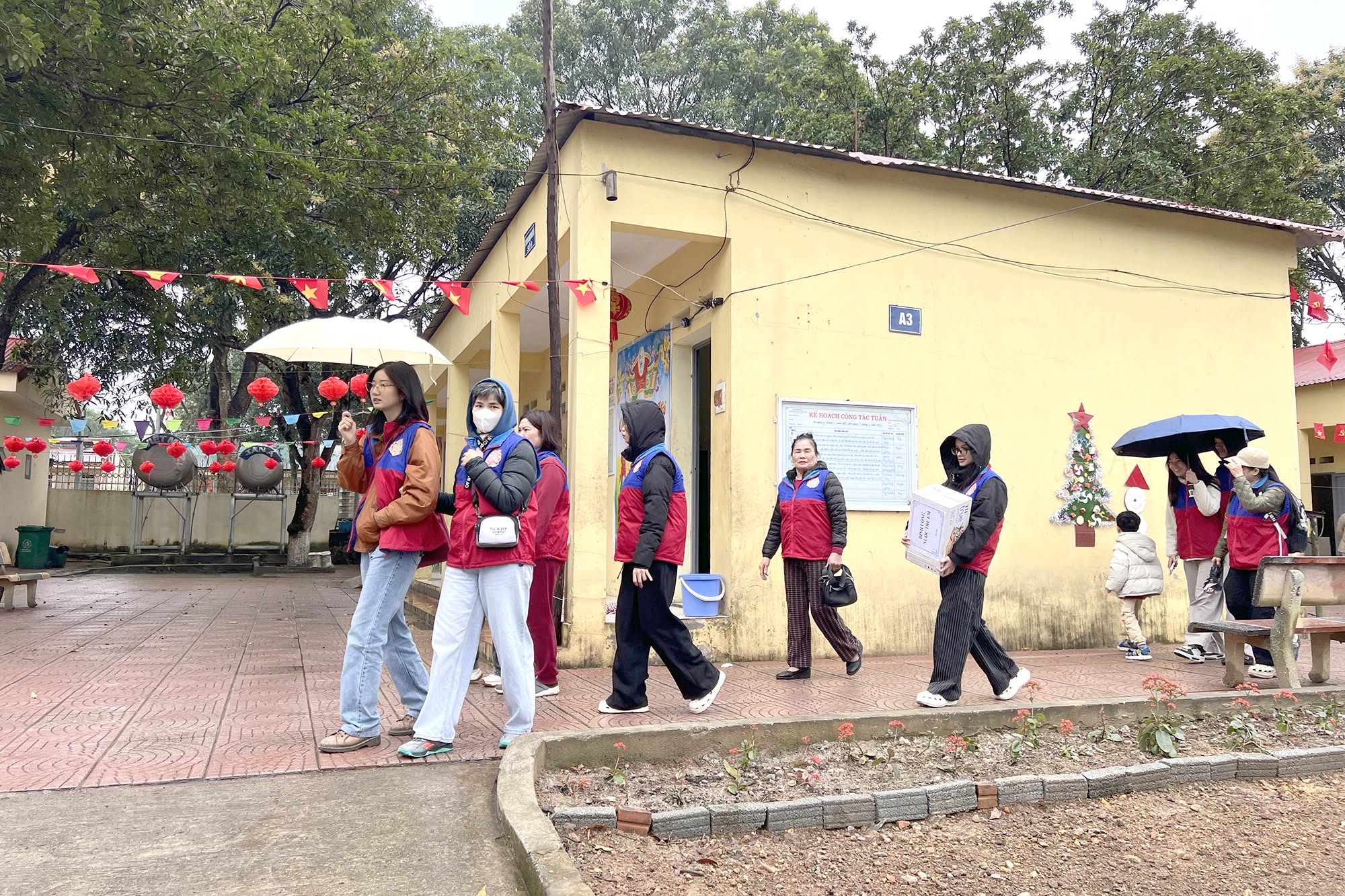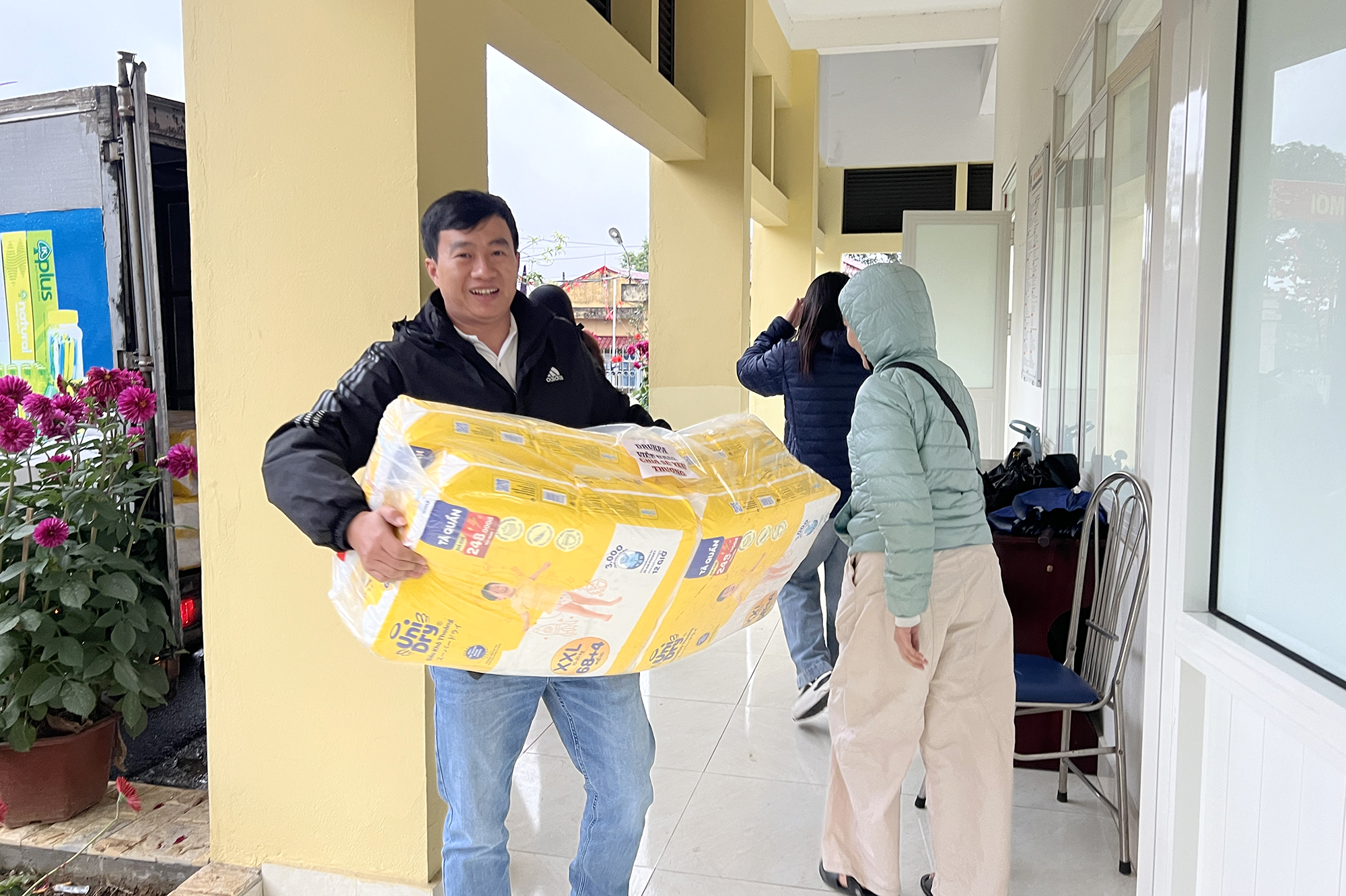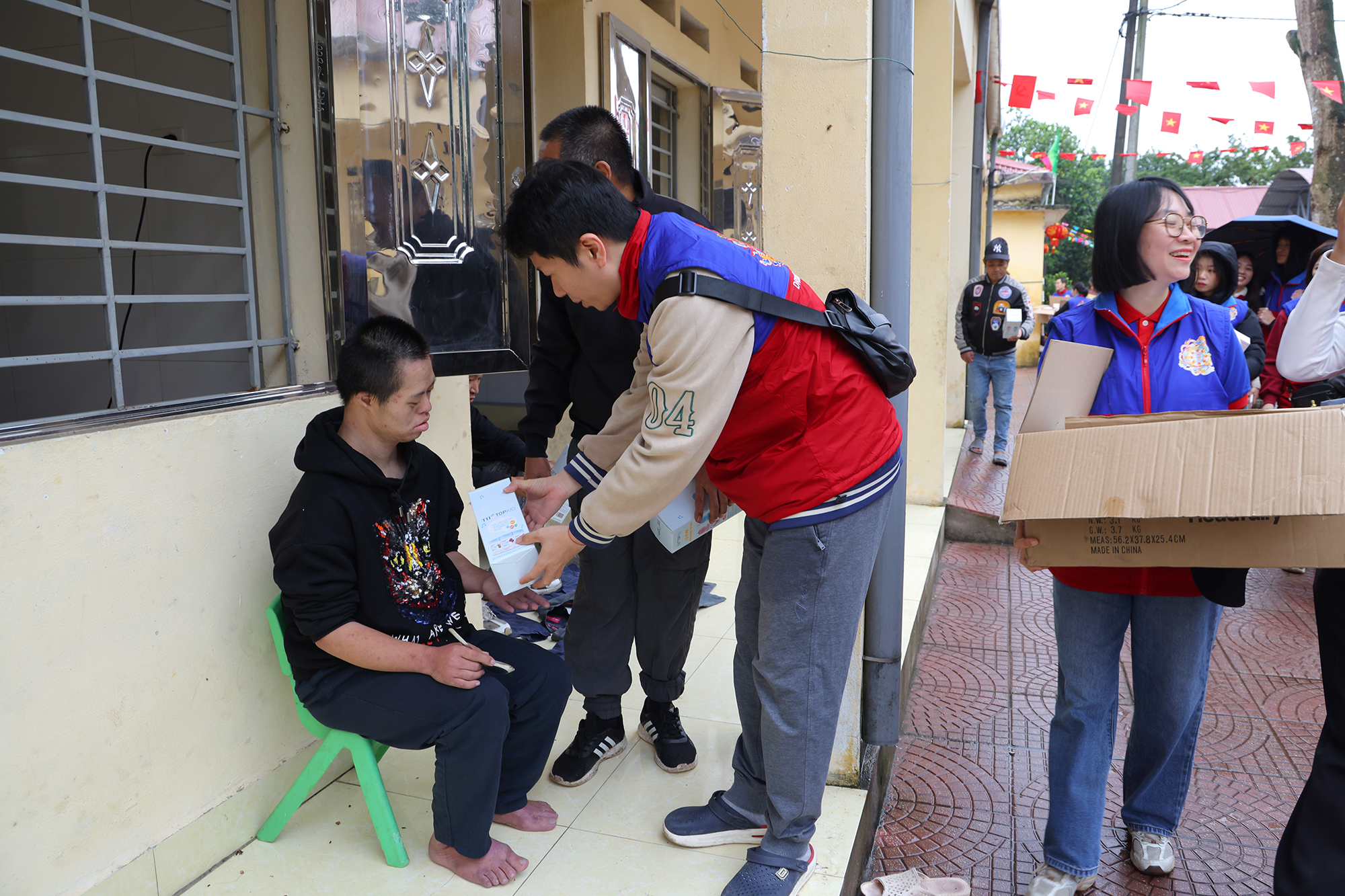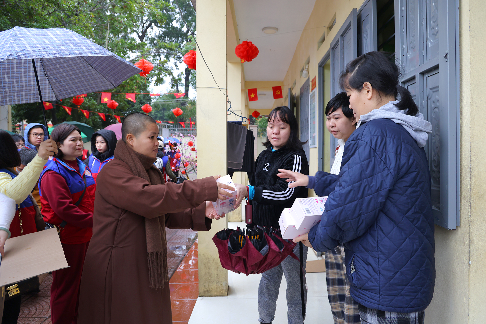 Trung tâm nuôi dưỡng người già và trẻ em khuyết tật Thụy An (Sơn Tây) – nơi đang chăm sóc hơn 320 mảnh đời thiếu may mắn. Tại đây Đoàn đã trao tặng nhiều nhu yếu phẩm thiết thực như bỉm, áo len người lớn và trẻ em, bột giặt, xà phòng, bình nước nóng…
