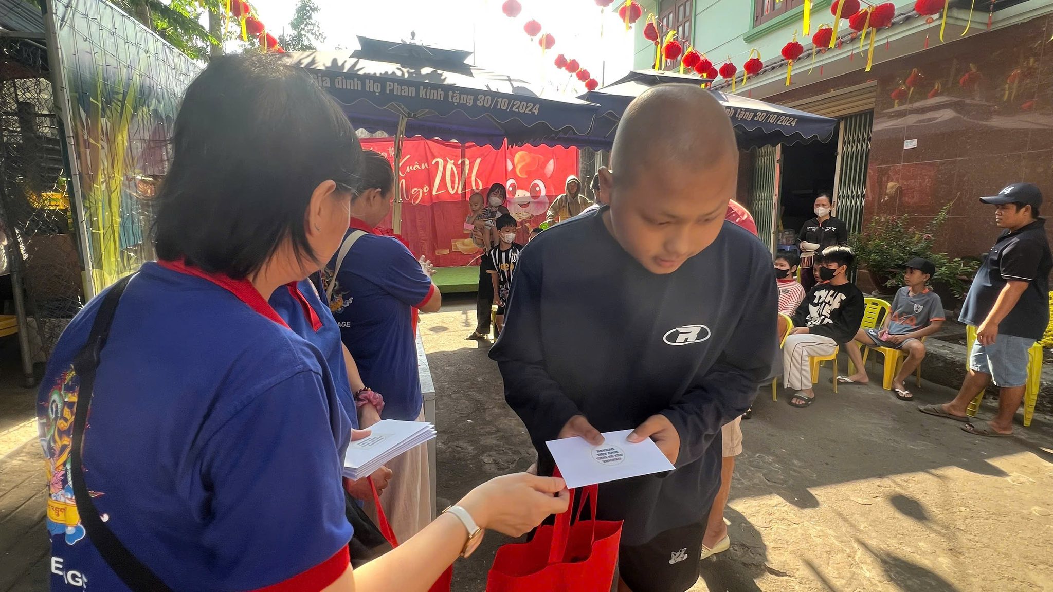 Mỗi em nhận được những phần quà bánh, sữa yêu thương cùng 400.000 đồng tiền mặt, góp phần giúp các em có thêm điều kiện đón Tết ấm áp hơn trong thời gian điều trị.