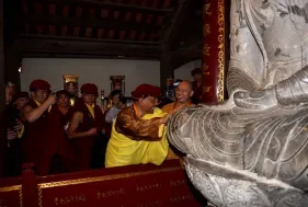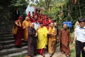 Sáng nay 21/2/2019, trong lịch trình tại Việt Nam, Đức Gyalwang Drukpa và Tăng đoàn Truyền thừa Drukpa đã viếng thăm Chư tôn Giáo Phẩm Trung ương Giáo hội Phật giáo Việt Nam tại Chùa Phật Tích, Bắc Ninh. Đại Bảo Tháp Mandala Tây Thiên xin gửi tới Quý vị những hình ảnh mới nhất về chuyến viếng thăm này.