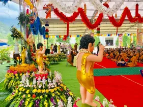 Hôm nay, trong không khí hân hoan của những người con Phật kỷ niệm ngày Đức Thế tôn hoá hiện giáng thần, chư tăng ni tại Đại Bảo Tháp Mandala Tây Thiên cùng hàng nghìn phật tử đã cử hành Đại lễ mừng Phật đản trang nghiêm và thành kính. Chương trình diễn ra với rất nhiều hoạt động như tụng kinh, thực hiện lễ tắm Phật, nghe thầy giáo thọ giảng pháp... Đại Bảo Tháp Mandala Tây Thiên xin gửi tới Quý vị những hình ảnh nổi bật từ khoá lễ.