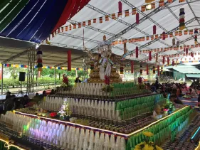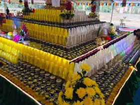 Đại đàn đã được chuẩn bị vô cùng thanh tịnh và trang nghiêm với 1000 bát nước cúng dường, 1000 bát gạo cúng dường, 1000 ngọn đèn cúng dường, 1000 cây hương cúng dường, 1000 bông hoa cúng dường, 1000 chiếc oản nhiều màu (tượng trưng cho 1000 chiếc bánh cúng torma), 1000 chiếc tràng phan, 1000 bảo cái (lọng báu)... cùng rất nhiều vật phẩm cúng dường khác.