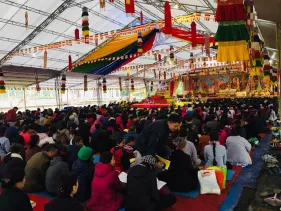 Ngày 17/03/2019, hàng nghìn Phật tử không quản mưa rét đã vân tập tại Đại Bảo Tháp Mandala Tây Thiên (Tam Đảo, Vĩnh Phúc) để tham dự Đại Lễ Cầu an đầu năm Kỷ Hợi do chư Tăng, Ni tại đây chủ trì.
