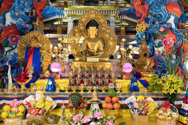 Lúc đó, vị trời Tỳ Thủ Yết Ma trổ hết tài khéo, chuyên ròng chẳng trễ, không đầy một ngày mà tạo thành tượng! Tượng ngồi kiết già, cao bảy thước mộc, mặt và tay chân đều màu vàng tía.