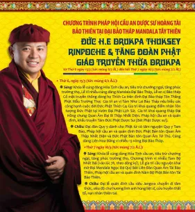 Được sự chấp thuận của Ban Tôn giáo Chính phủ và Hội đồng Trị sự Giáo hội Phật giáo Việt Nam, Đại Bảo Tháp Mandala Tây Thiên (thị trấn Đại Đình, huyện Tam Đảo, tỉnh Vĩnh Phúc) xin trân trọng thông bạch chuyến viếng thăm Việt Nam đầu xuân Giáp Thìn của Đức H.E Drukpa Thuksey Rinpoche và Tăng đoàn Truyền thừa Drukpa.