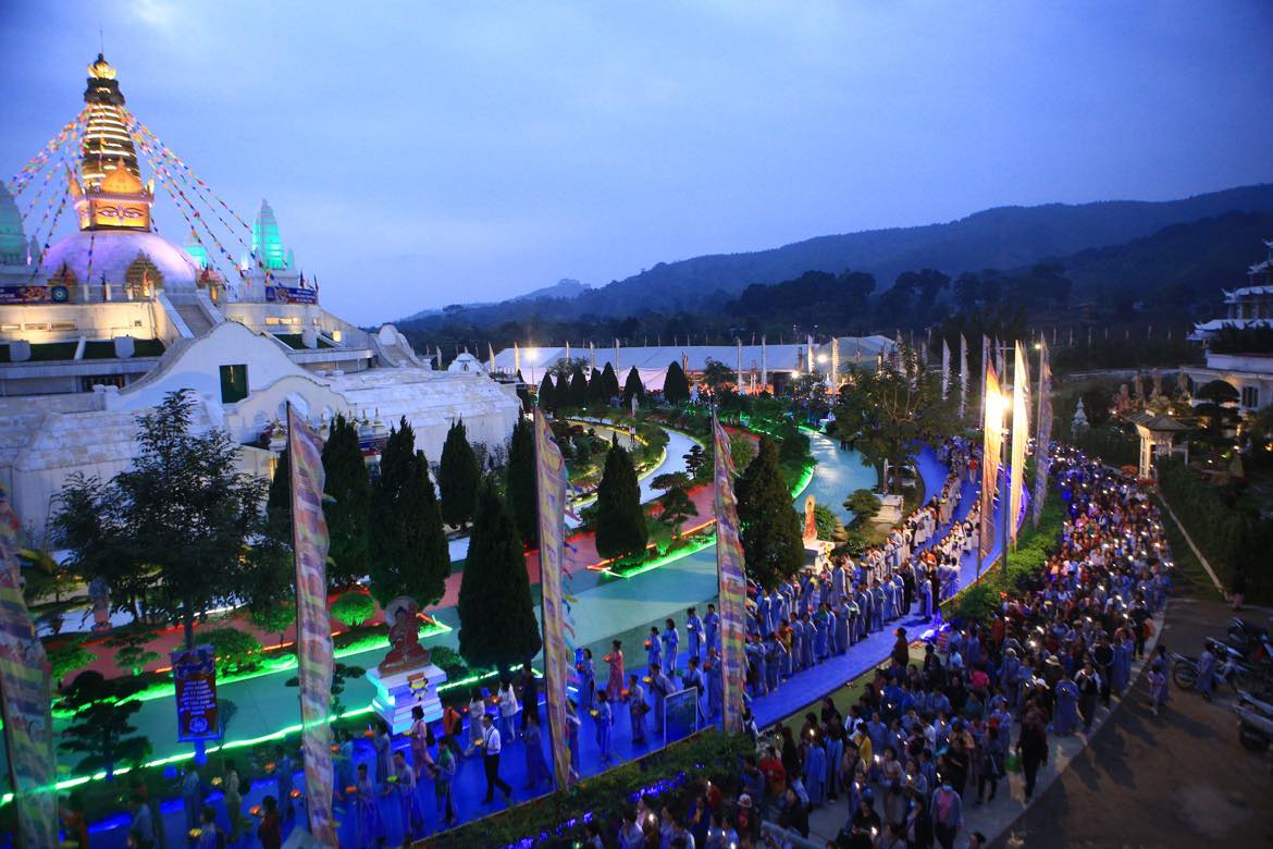 Đại Bảo Tháp Mandala Tây Thiên linh thiêng màu nhiệm trong đêm Pháp hội cúng đèn hoa đăng. Ảnh: BTC