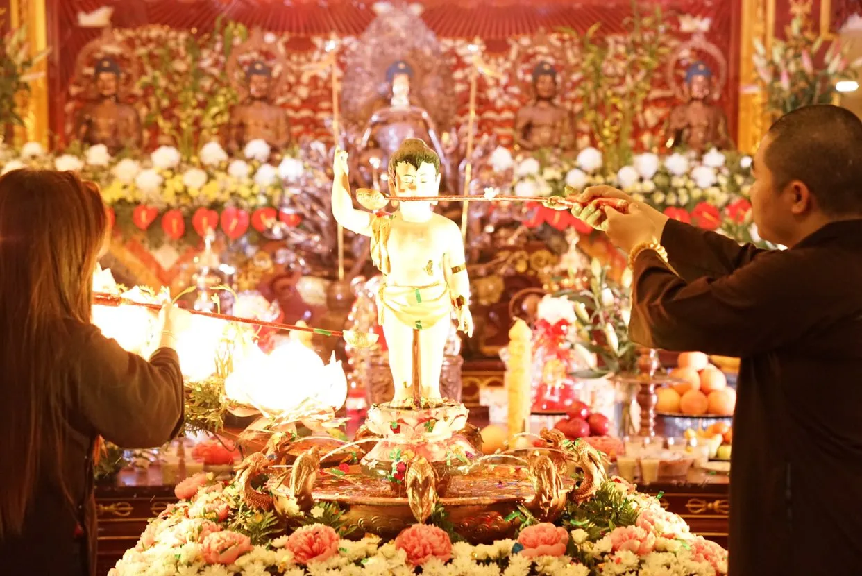 Thời khắc Đức Phật đản sinh được tái hiện sống động tại Đại Bảo Tháp Mandala Tây Thiên