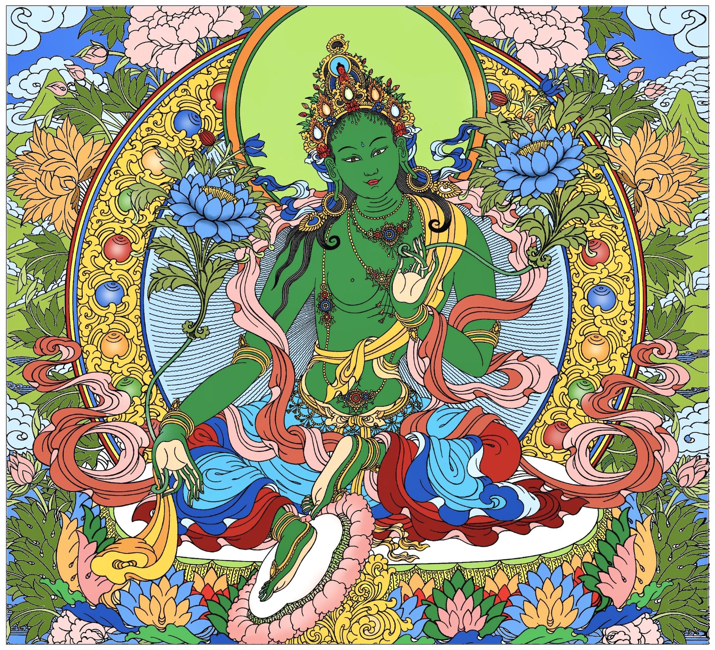 HƯỚNG DẪN VẼ HOẶC TÔ MÀU TRANH ĐỨC PHẬT QUAN ÂM ĐỘ MẪU TARA THEO MẪU
