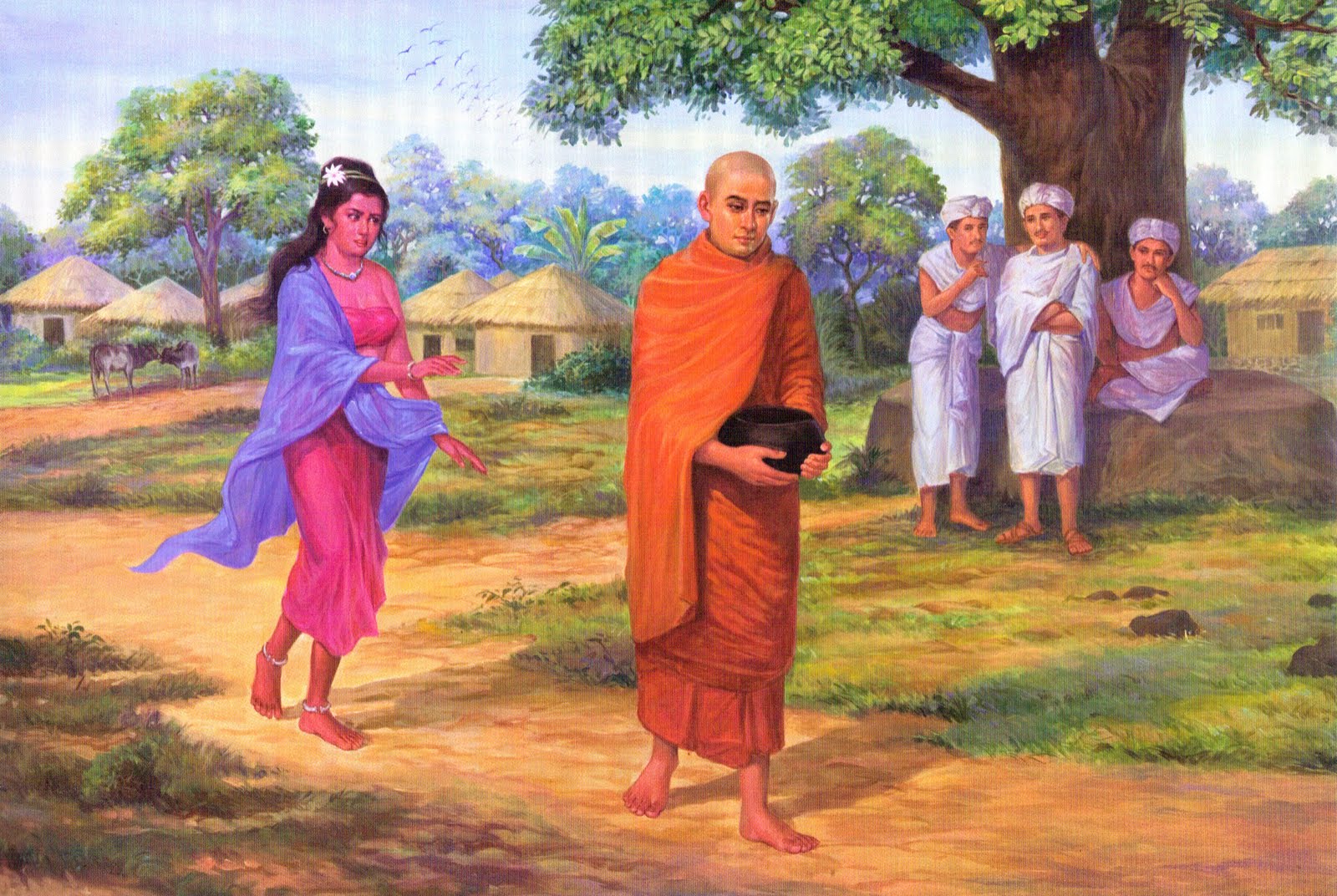 - Thưa cô! Người Sa-môn đốì với mọi người đều bình đẳng, không phân biệt sang hèn, giai cấp, cô đừng ngại, xin hoan hỷ cho tôi bát nước!