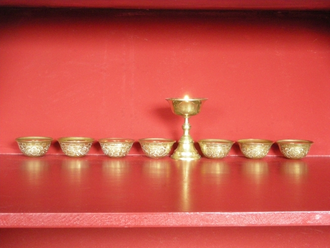 Cách sắp đặt ban thờ vong cần có đèn và bảy bát nước trắng cúng dàng. Đèn cần được bật liên tục để cúng dàng ánh sáng trí tuệ, nếu không tiện dùng đèn dầu hay nến chúng ta có thể thắp đèn điện trên khu vực ban thờ. Xung quanh khu vực ban thờ nên trang trí các tràng phan chiến thắng, lọng báu và phướn.