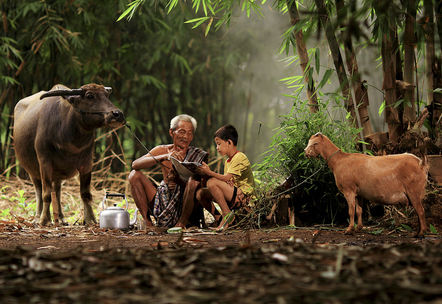 "Ngày xưa có một con cá, vì nó là loài ở nước, nên dĩ nhiên cuộc đời chỉ sống trong nước, và ngoài nước ra không biết gì hết.