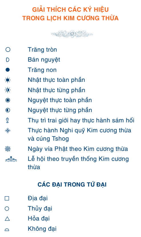 Giải thích các ký hiệu trong lịch Kim Cương Thừa