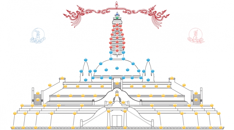 Việc xây dựng một bảo tháp cần hai phần: Xây dựng Bảo tháp bên ngoài là từ vật chất hình thành hình dáng kiến trúc, tượng tháp, sắp đặt, gia trì. Việc xây dựng bảo tháp bên trong chính là trí tuệ và động cơ thanh tịnh.
