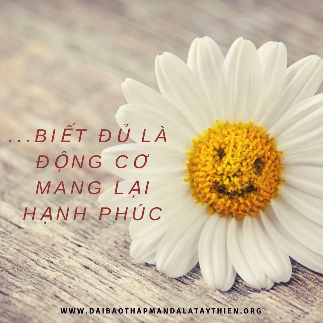 Nếu nói theo cách nhìn của đạo Phật, Đức Phật đã dạy biết đủ thường vui. Biết đủ có thể bị hiểu nhầm với sự tự mãn nhưng đó là hai điều hoàn toàn khác biệt. Biết đủ không có nghĩa là cứ ngồi một chỗ mà nhủ thầm: “Tuyệt thật, giờ thì ta có thể gác chân thư giãn vì ta đang rất thỏa mãn với cuộc sống!”. Sự hài lòng đến từ niềm tinh tấn hỷ lạc. Chúng ta hài lòng vì chúng ta biết rằng ngày hôm nay mình đã cố gắng hết sức, chúng ta thích nghi với đổi thay, thực sự tri ân cuộc sống và tình yêu chúng ta có với cuộc sống này.