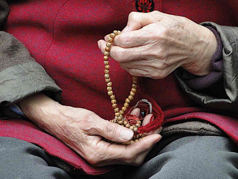 Nắm lấy chuỗi tràng trần niệm dứt,