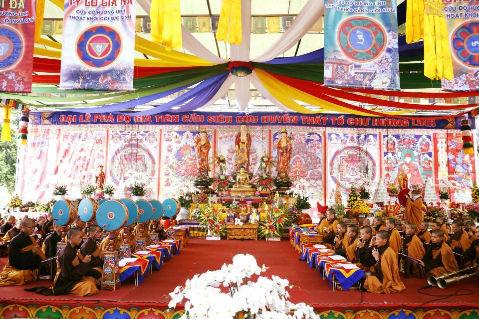 Theo như các năm trước, khoá lễ cầu siêu phả độ gia tiên tại Đại Bảo Tháp luôn được cử hành trang nghiêm, với các nội dung và nghi lễ khác nhau: tụng kinh Mục Liên sám Pháp, khai thị của Nhà chùa về ý nghĩa cầu siêu, khoá lễ triệu thỉnh Phật A Di Đà, cúng dàng đèn hoa đăng, phóng sinh, cầu siêu quán đỉnh Changwa (theo nghi thức Phật giáo Kim Cương thừa… Đàn lễ diễn ra khá dài từ sáng đến tối muộn với trọn vẹn sự tập trung và tâm thành của chư tăng, ni và đại chúng phật tử tham dự.