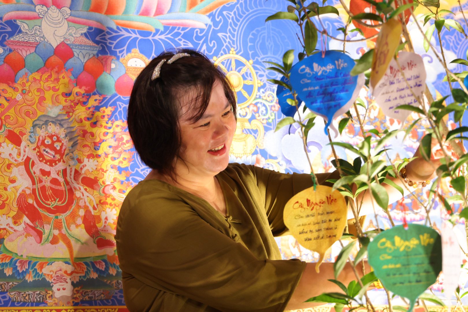 Mỗi chiếc lá, mỗi tấm thiệp treo lên cây đều là một ước nguyện, một cam kết yêu thương gửi đến cha mẹ. Xin đừng để những lời yêu thương chỉ còn là lời nói cuối cùng. Hãy nói, hãy làm khi cha mẹ vẫn hiện hữu bên ta…