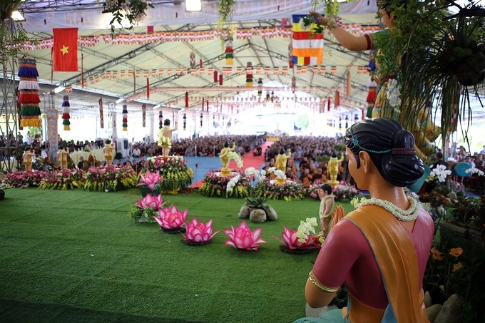 Theo sư thầy Thanh Tịnh, mọi năm đại lễ tập trung nhiều vào các nghi lễ tâm linh. Năm nay nhà chùa thiết kế một vườn Lâm Tỳ Ni có hoàng hậu Ma Da, thái tử, các tỳ nữ để người tham dự có thể sống lại cảm giác đón nhận khoảnh khắc linh thiêng khi Đức Phật đản sinh.