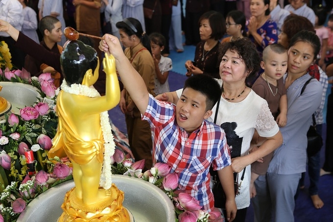 Buổi lễ diễn ra một ngày với nhiều nghi lễ Phật giáo: dâng hương hoa, lễ Tam bảo, đọc tụng kinh sách ngợi ca cuộc đời và công hạnh của Đức Phật.