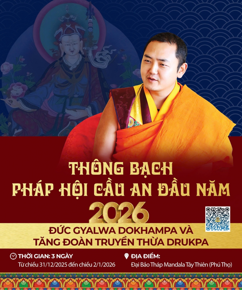 Được tổ chức vào ngày đầu năm mới (từ 31/12/2025 đến 2/1/2026) tại Đại Bảo Tháp Mandala Tây Thiên, với sự hiện diện gia trì của Đức Nhiếp Chính Vương Gyalwa Dokhampa - bậc Kim Cương Thượng Sư - và Tăng đoàn Truyền thừa Drukpa, Pháp hội này là phúc duyên quý báu để đại chúng tham dự khai mở thiện duyên, kết nối với năng lượng từ bi – trí tuệ từ chư Phật Bồ tát, chư Kim Cương Hộ Pháp, cùng chào đón một Năm mới 2026 an lạc, cát tường, hạnh phúc thành tựu!