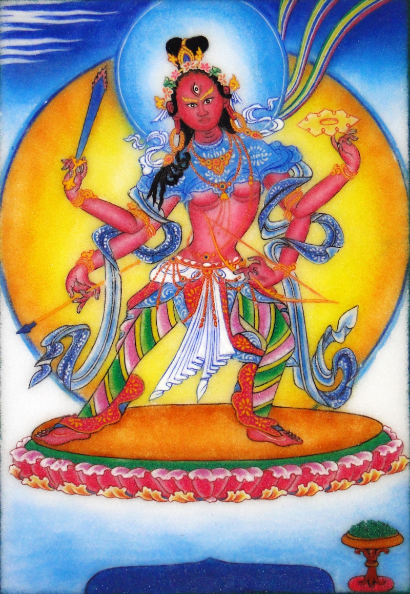 Những Bản tôn Uy mãnh biểu trưng cho sự đấu tranh mạnh mẽ để chuyển hóa những cảm xúc sân giận thành dũng lực nơi mỗi người. Bản tôn này là hiện thân của tất cả phiền não bên trong làm “đen tối” những tư tưởng, lời nói và hành động của chúng ta và ngăn cản chúng ta đạt đến mục đích giác ngộ hoàn toàn. Theo truyền thống, những Bản tôn Uy mãnh được hiểu là những khía cạnh của nguyên lý Từ Bi, chỉ đáng sợ đối với những người thấy họ như những thế lực bên ngoài.