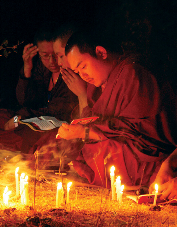 Là những hành giả Kim Cương thừa, chúng ta cần tin rằng: mọi thứ đều có thể được tạo ra từ bên trong chính mình, vì chính chúng ta tạo nên mọi thứ. Khi bị ái dục chi phối, chúng ta tạo nên bất thiện nghiệp hoặc thiện nghiệp. Vì thế chúng ta có thể tự chuyển hoá, để tạo nên sự an lạc hạnh phúc cho chính mình. Chúng ta có thể tự mình tránh các nhân đau khổ, đấy là niền tin của chúng ta. Cùng với niềm tin tưởng như vậy, trong thực hành của Kim Cương thừa chúng ta kèm với việc quán tưởng. Có rất nhiều loại quán tưởng như quán tưởng Đức A Di Đà, Quan Âm, Liên Hoa Sinh. Rất nhiều cách quán tưởng khác nhau, nhiều Chân ngôn khác nhau, nhiều khế ấn khác nhau, nhiều tư thế của thân khác nhau. Tư thế ngồi kết già được gọi là tư thế của Đức Tỳ Lô Giá Na, như vậy có hàng trăm các kỹ xảo khác nhau, nhưng kỹ xảo này rất cần thiết để nâng đỡ tâm chúng ta trong sự chuyển hoá.