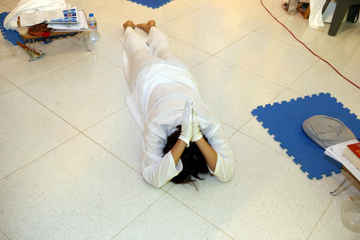 5. Khi thân đã lễ xuống sàn, hãy xả bỏ tất cả các xúc tình phiền não và nghiệp ác vào đất.